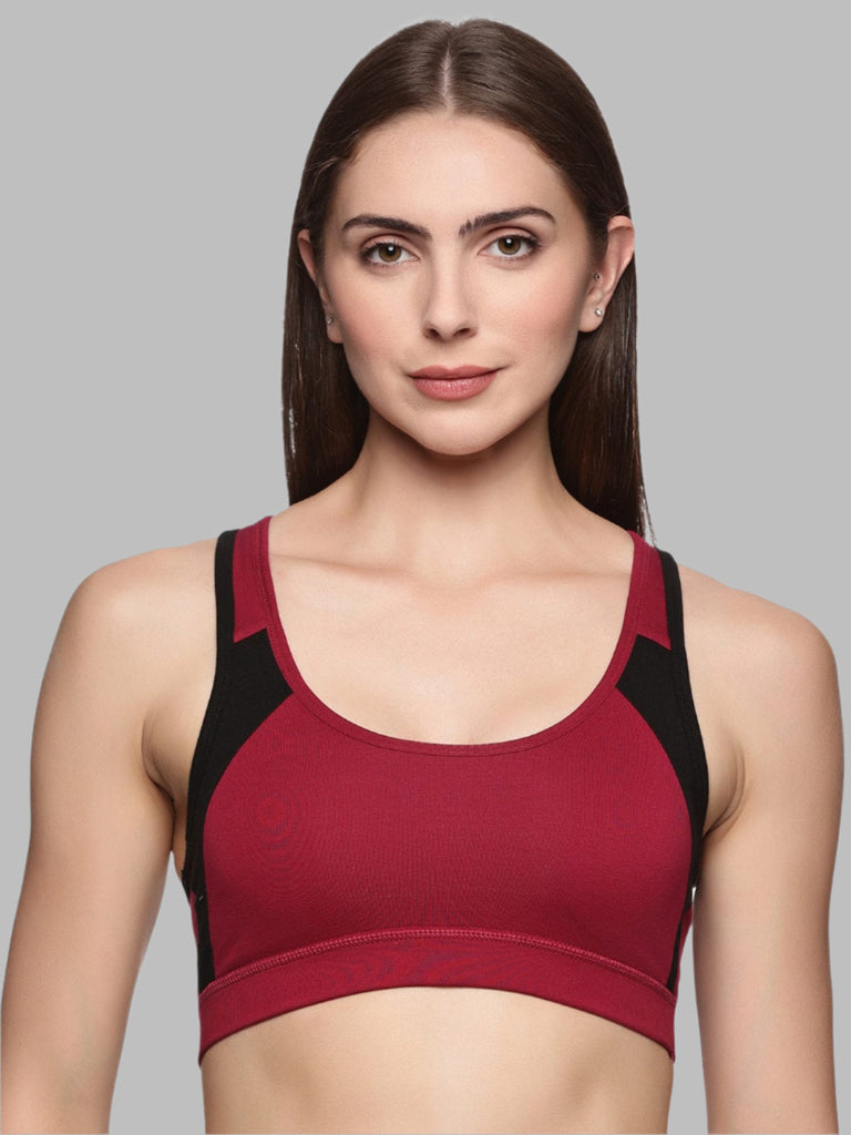 ✓Wire-free Padded Super Combed Cotton Elastane Stretch Full Coverage Racer Back Styling Active Bra with Removable Pads